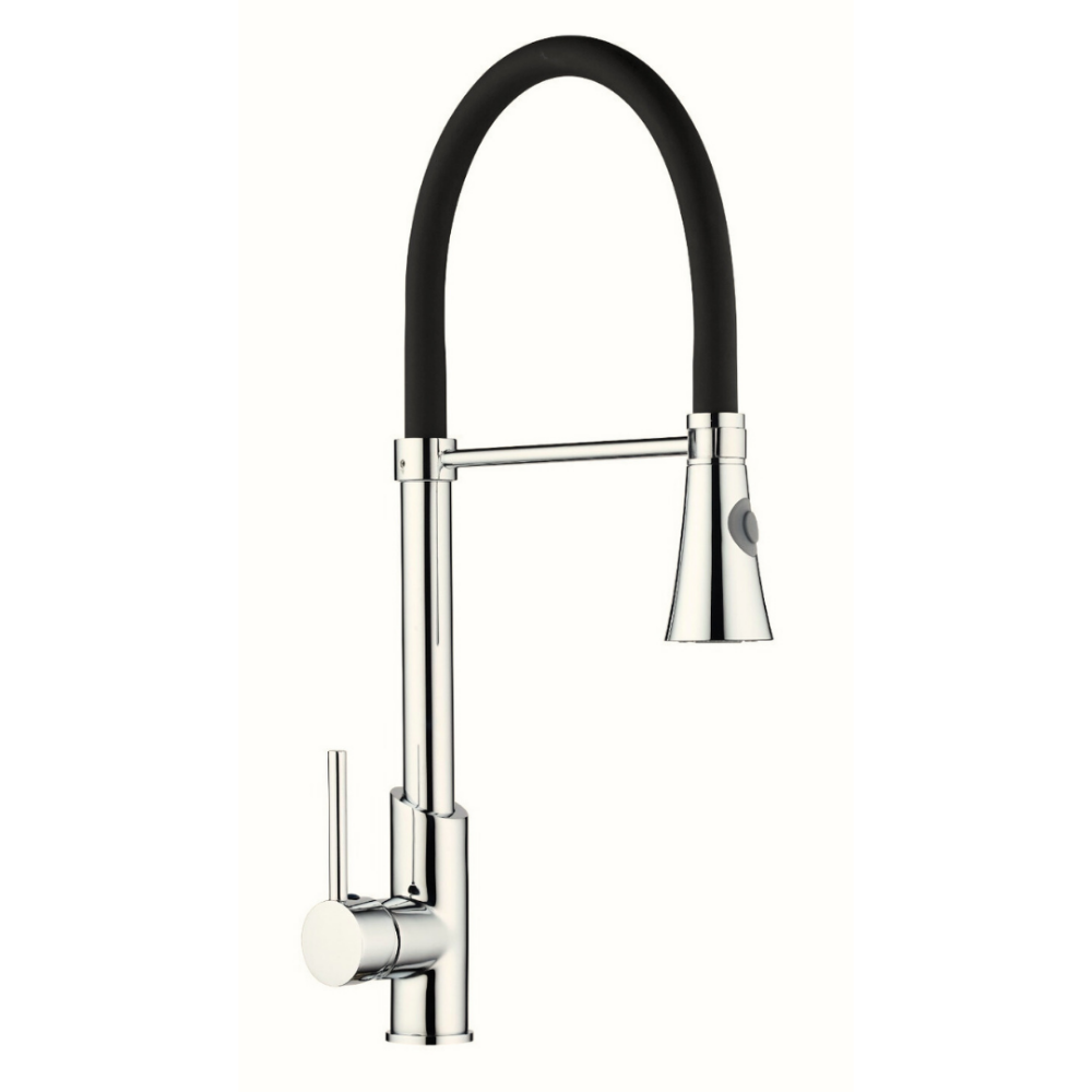 Lento Spiralli Esnek Hortumlu Mutfak Evye Bataryası – Siyah Silikon, Çekilebilir Duş Başlıklı