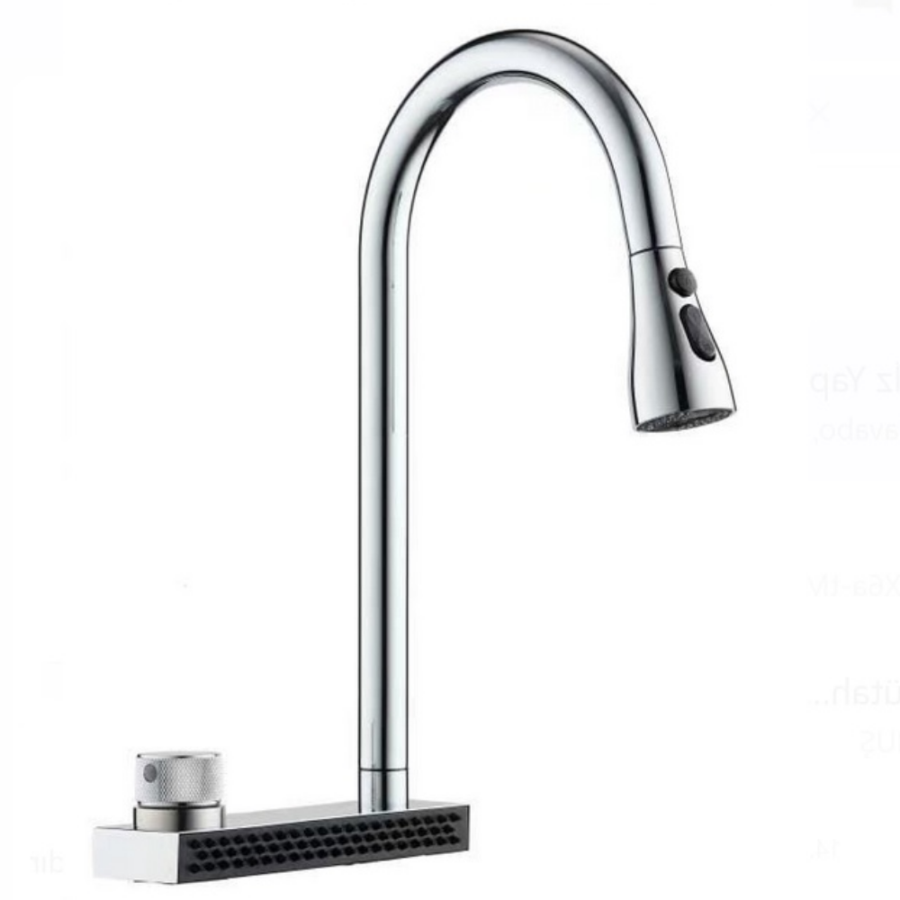 Porte Krom Evye Bataryası – Spiralli ve Şelale Akışlı Mutfak Musluğu (3 Fonksiyonlu Çıkabilir Başlık, Pirinç Gövde)