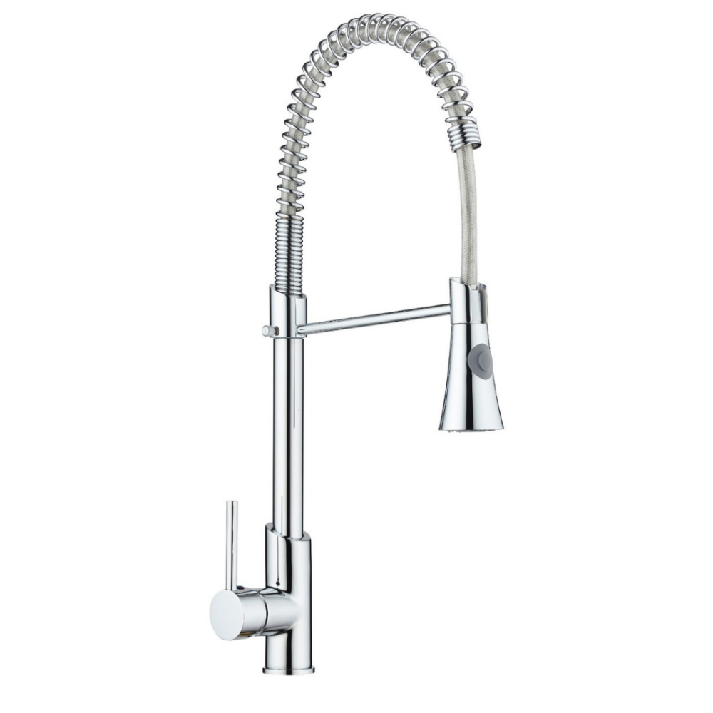 Solo Krom Spiralli Evye Bataryası – Çıkabilir Başlıklı Yüksek Açılı Mutfak Musluğu (Tek Kollu, Pirinç Gövde)