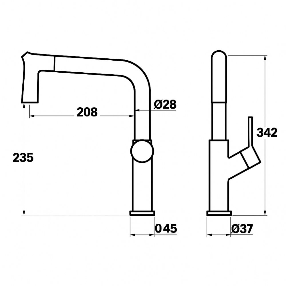 Bolero Siyah Evye Bataryası – Çıkabilir Başlıklı Yüksek Açılı Mutfak Musluğu (Tek Kollu, Pirinç Gövde, Parlak Krom Kaplama)
